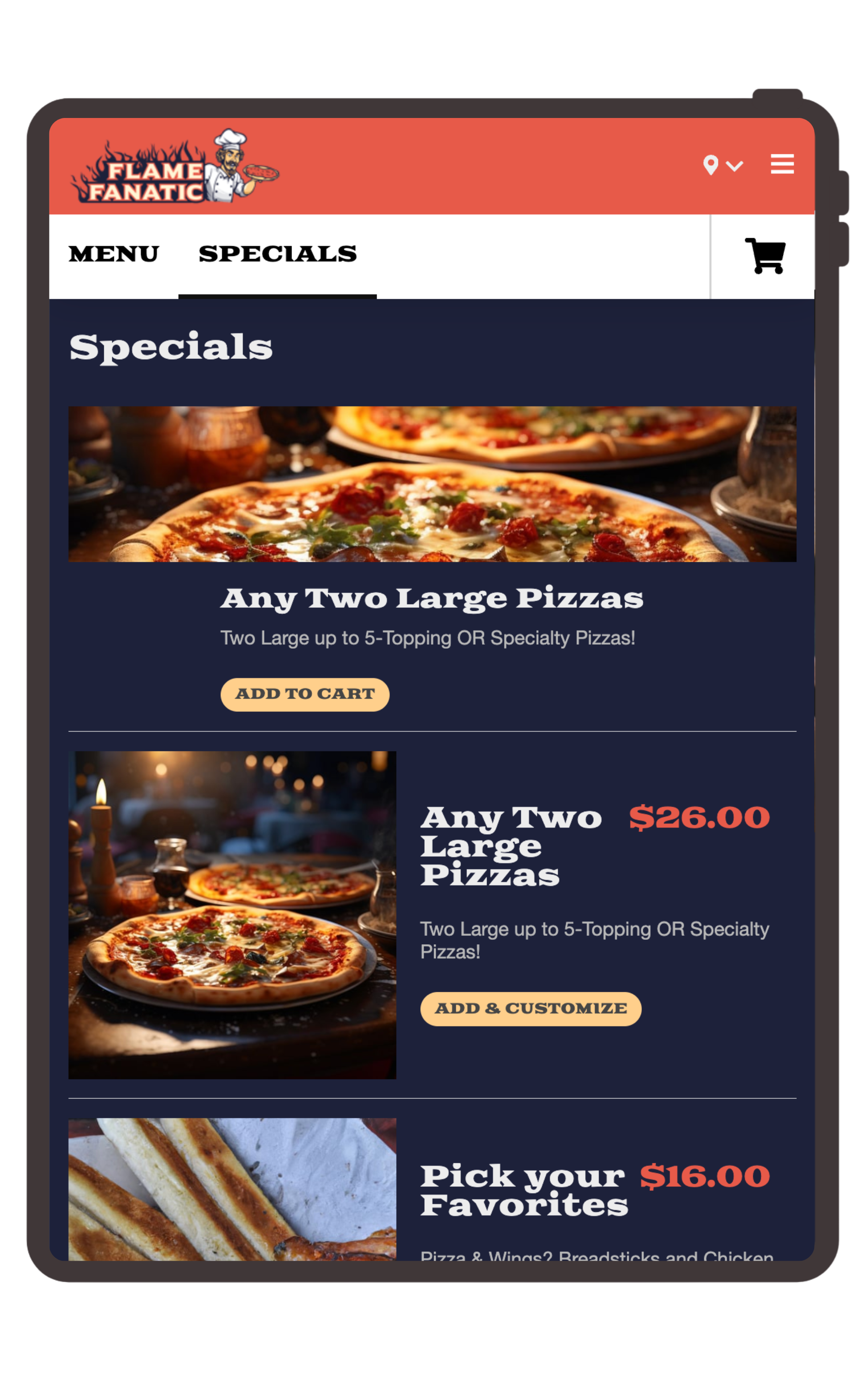 Incorporate one-time or recurring promotions & specials into the ordering experience.